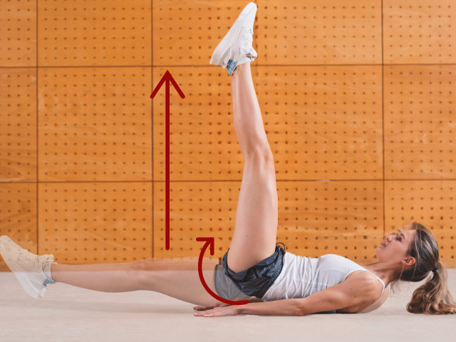- Lift one leg sideways away from your body.