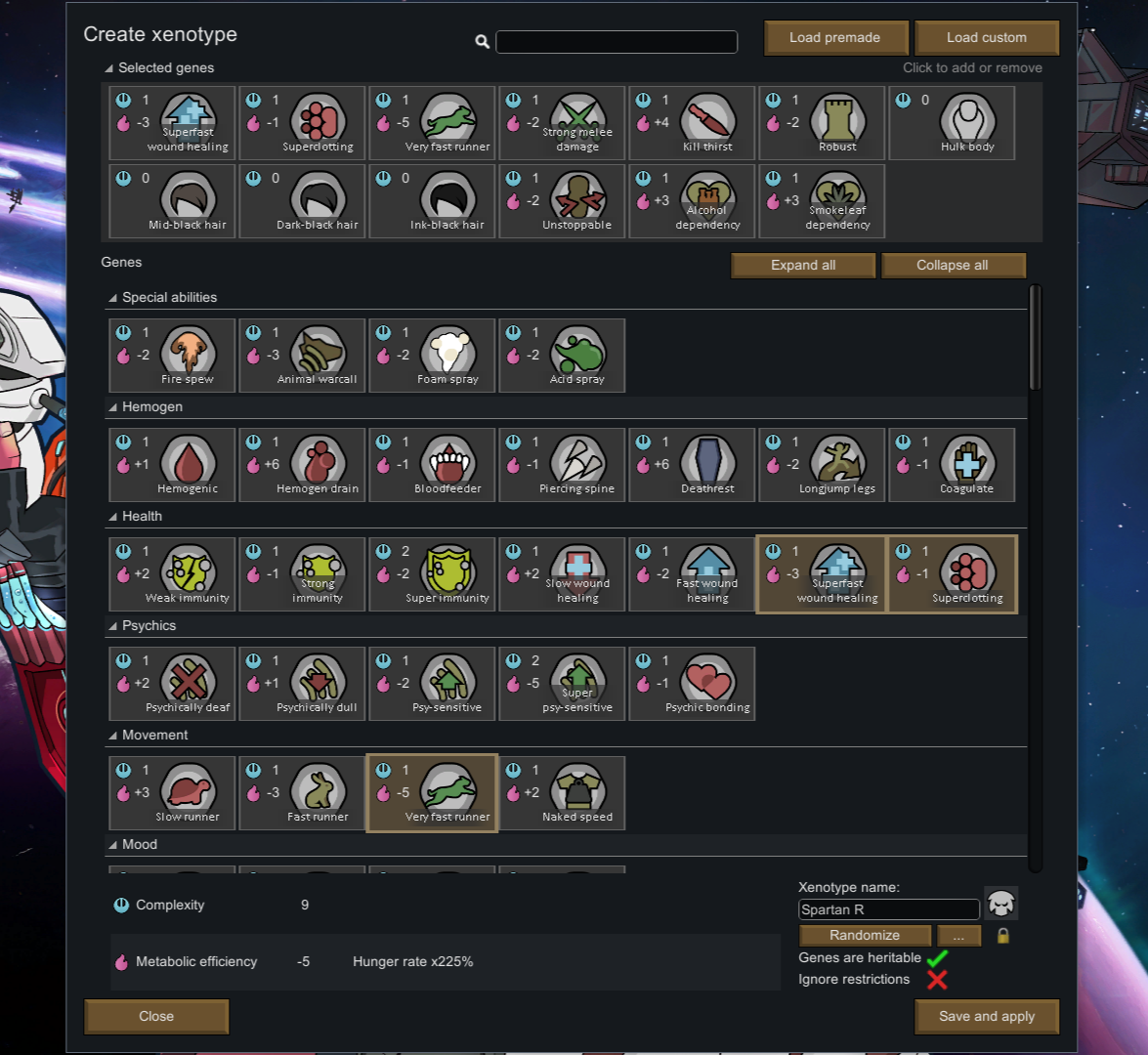 You can also make your own xenohuman. Any amount genes can be chosen, as long as the metabolic efficiency is not below -5.