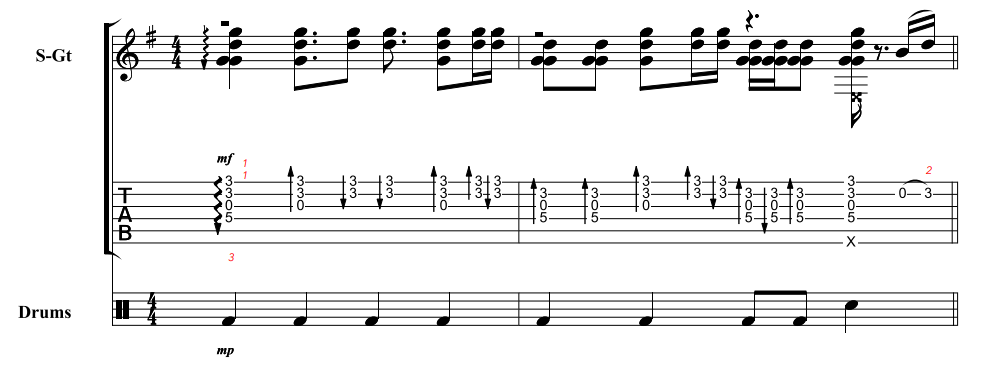 A guitar tab consists of six horizontal lines, representing the six strings of the guitar.