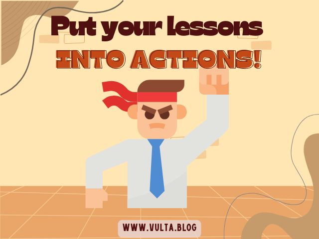 One must apply the lessons learned into actions for it to be considered wisdom. Lessons that are not applied into actions are simply baseless knowledge, it is of no use.